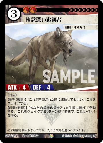 [コスト:3] [条件:] [タイプ:動物] [種属:キツネ] [ATK 3/DEF 2]