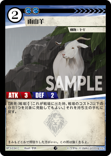 [コスト:2] [条件:山山] [タイプ:動物] [種属:スカンク] [ATK 3/DEF 2]