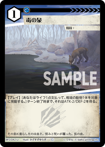 [コスト:2] [条件:山水無] [タイプ:動物] [種属:イモリ] [ATK 3/DEF 2]