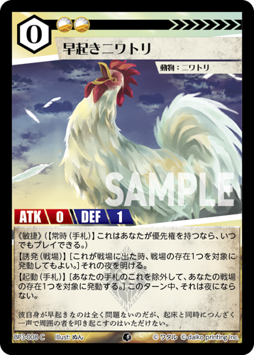 [コスト:0] [条件:平平] [タイプ:動物] [種属:ニワトリ] [ATK 0/DEF 1]