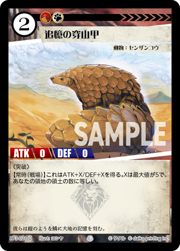 [コスト:2] [条件:山無] [タイプ:動物] [種属:センザンコウ] [ATK 0/DEF 0]
