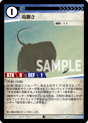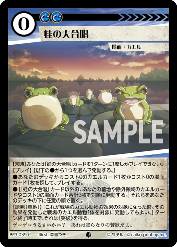 [コスト:2] [条件:山水無] [タイプ:動物] [種属:イモリ] [ATK 3/DEF 2]