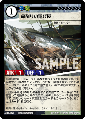 [コスト:1] [条件:森無] [タイプ:動物] [種属:アライグマ] [ATK 0/DEF 1]